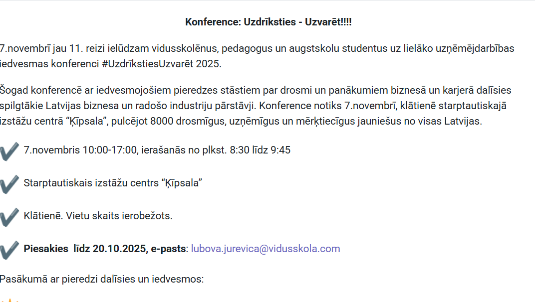 1. Pasākums - Uzdrīkstēt/Uzvarēt